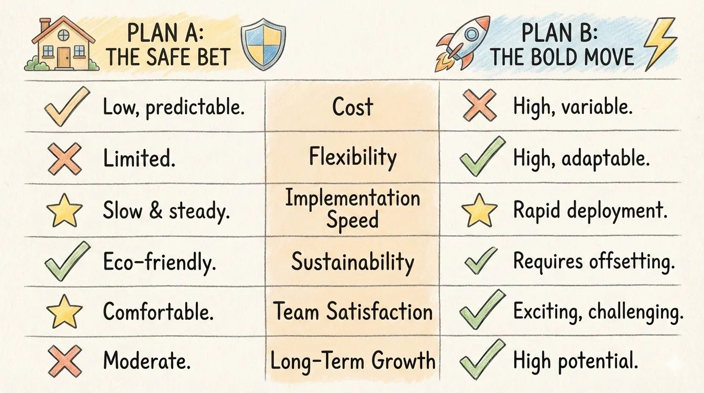 comparison 2 sides Before/after, pros/cons